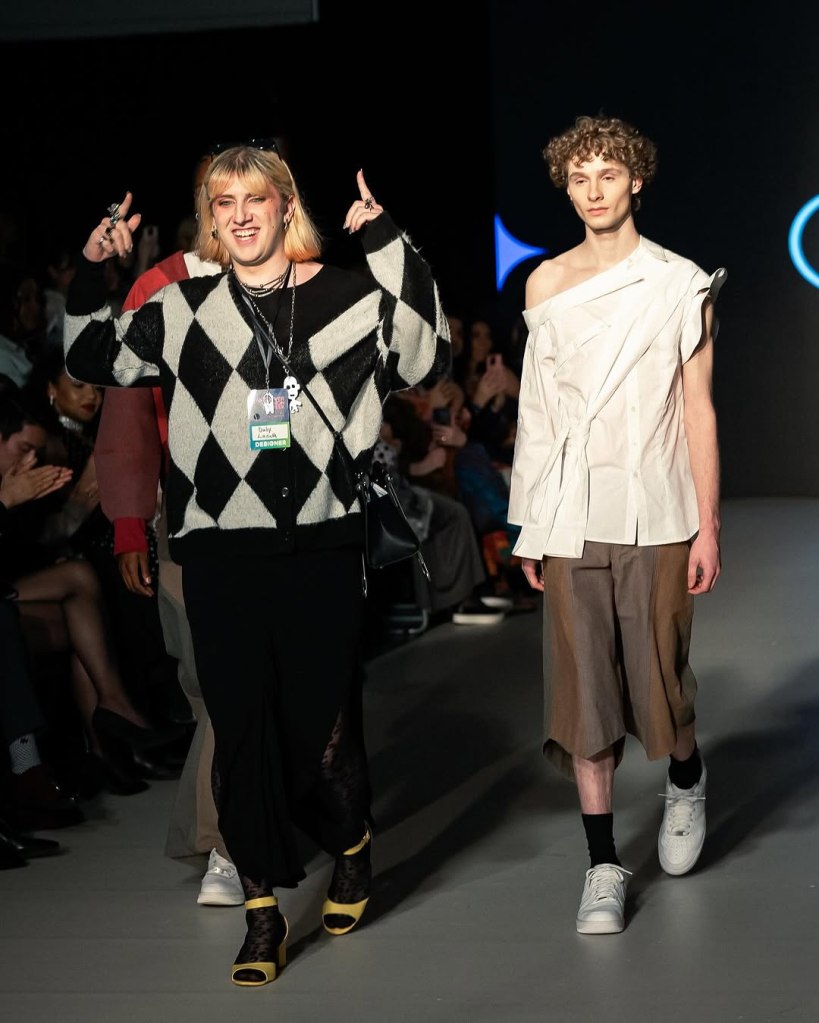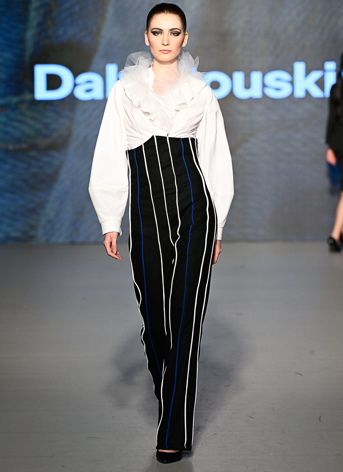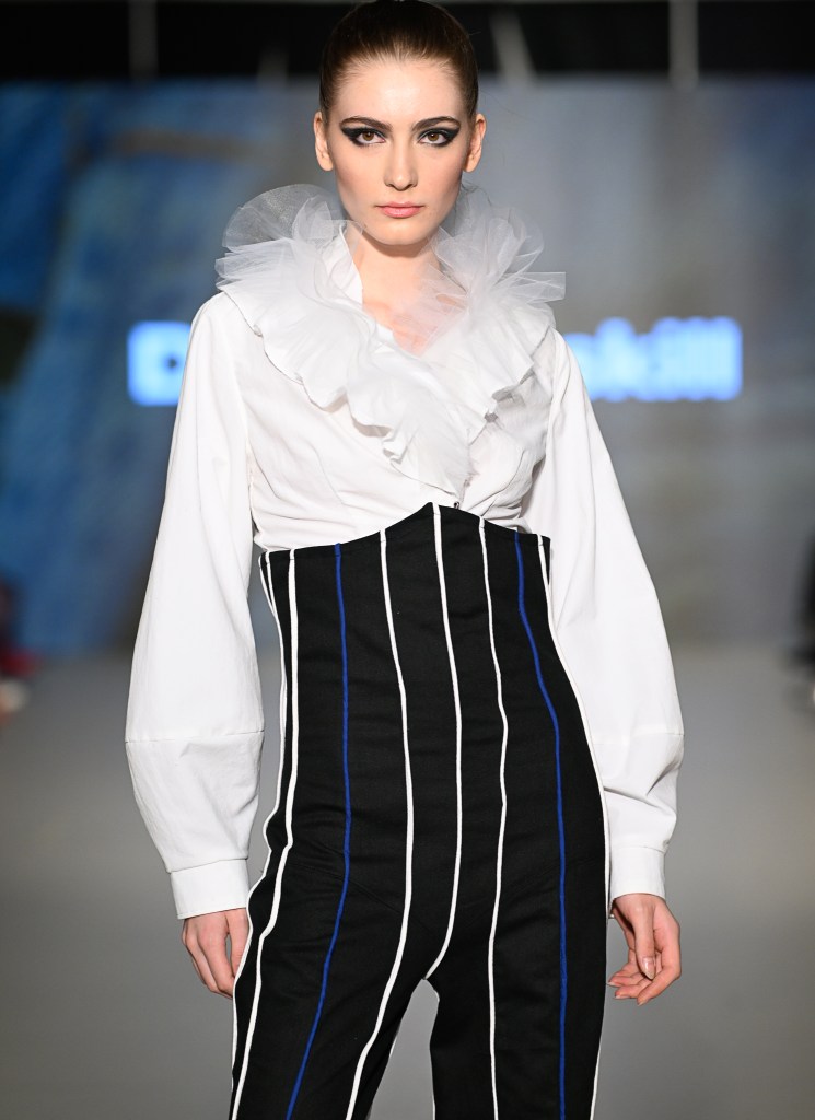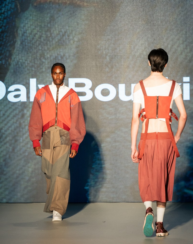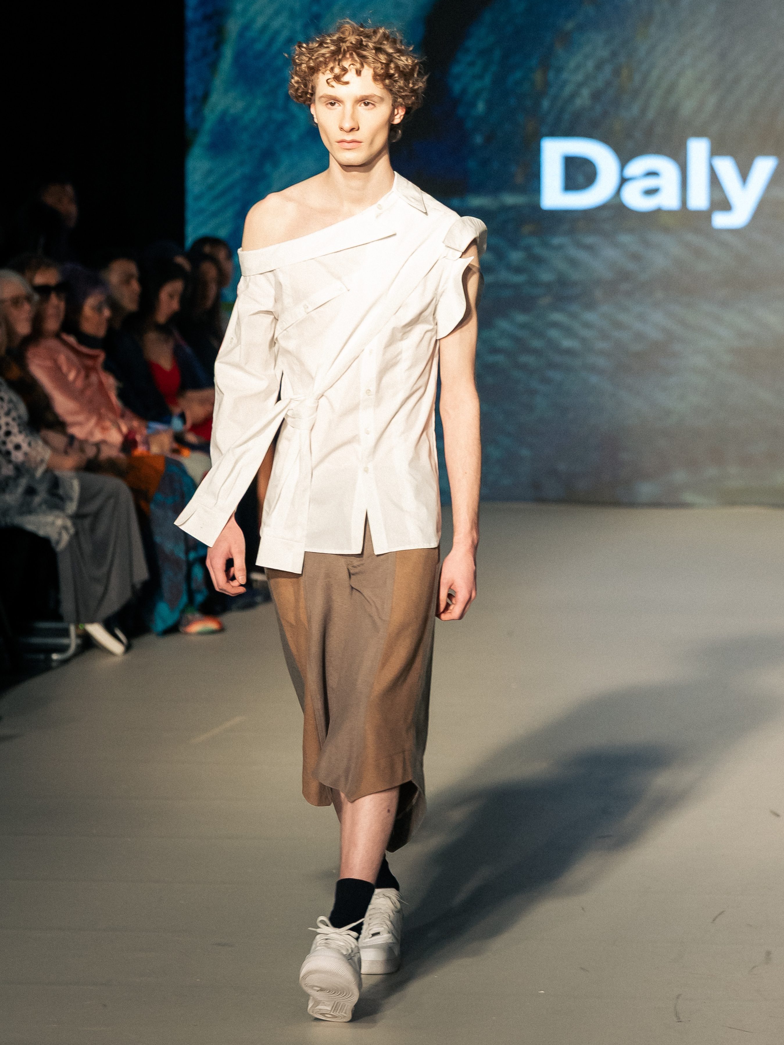 A divided world deserves divided fashion. Schism slices through gender norms and political posturing with a collection that flips the script. Feminine silhouettes are dressed in conservative motifs; masculine forms wear liberal flair. Satirical, subversive, and sharply tailored, each look is a statement on the absurd theatre of division.